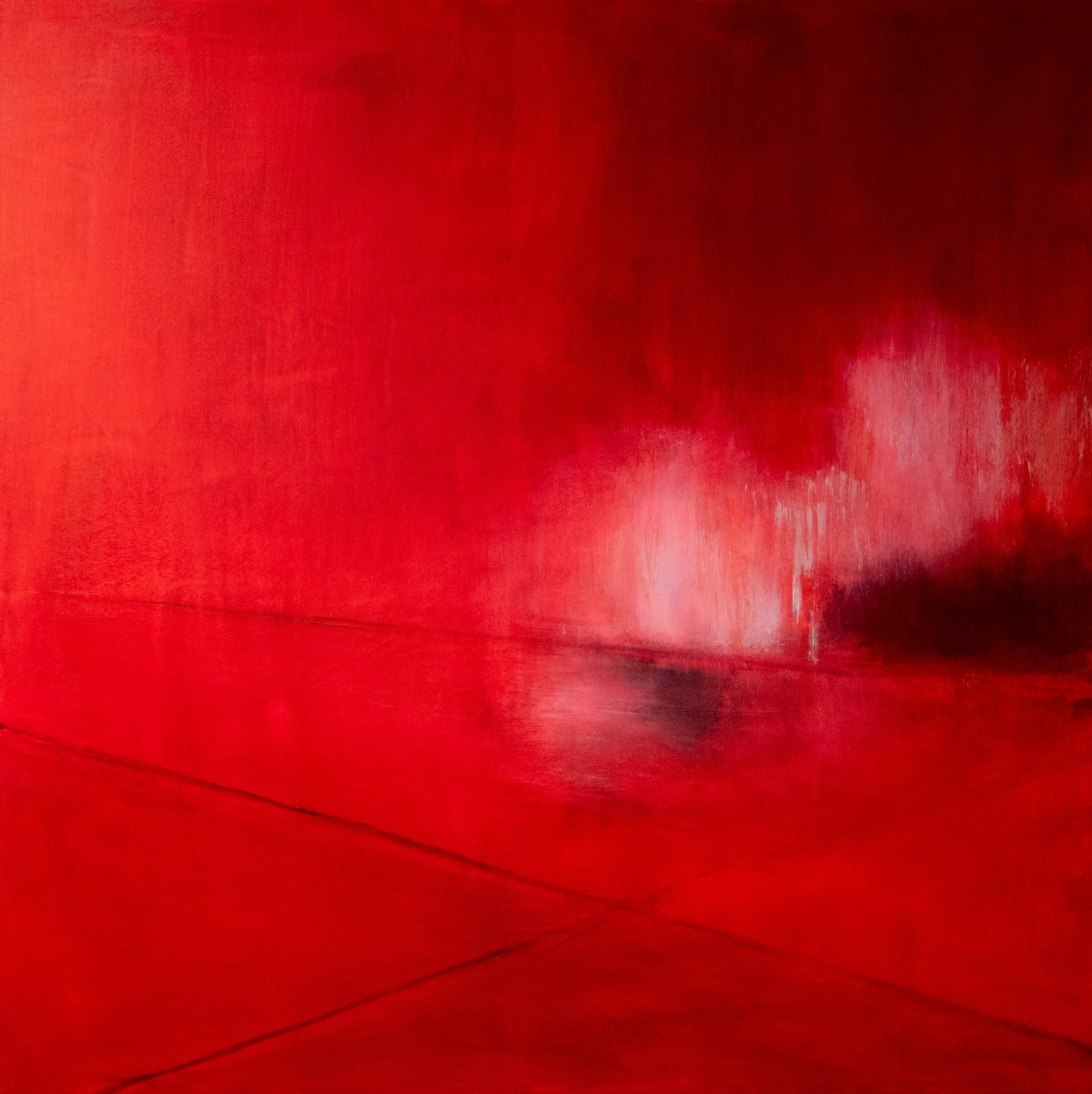 Zwischen Ruhe und Intensität entsteht ein Bildraum, der wie ein innerer Klang wirkt. „Roter Klangraum“ lädt dazu ein, in diese monochrome Landschaft einzutauchen und die subtilen Schwingungen wahrzunehmen, die sich in Farbe, Licht und Raum entfalten.