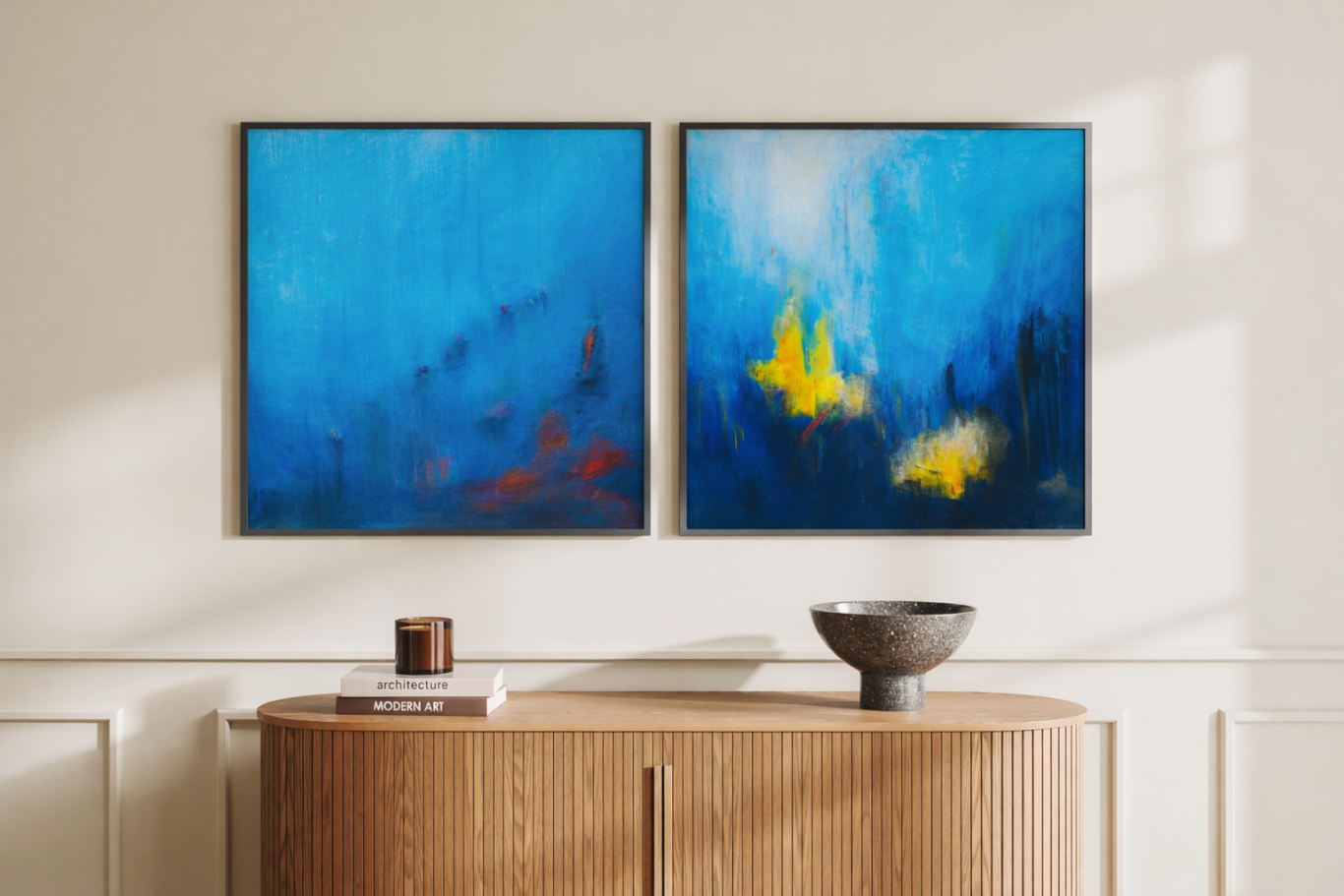 mit lebendigen Farbkompositionen beleben sie den Raum und lassen dabei eine leichte, bewegte Atmosphäre entstehen
